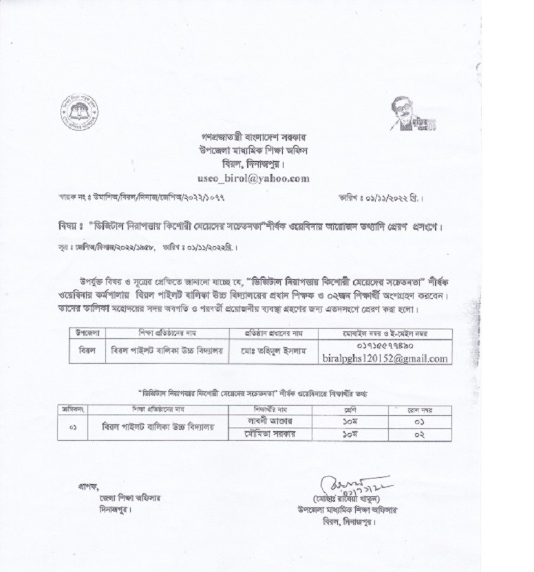 উক্ত সভায় সংশ্লিষ্ট সকলকে প্রয়ােজনীয় কাগজপত্রাদিসহ উপস্থিত থাকার/সংযুক্ত থাকার জন্য নির্দেশক্রমে অনুরােধ করা হলাে।